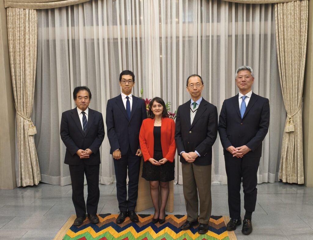 De izq. a der.: Dr. Hashiguchi, Miyakawa, Iveth Ussa, Embajador Shimizu, Mr. Kojima (el oficial de seguridad de la JICA)